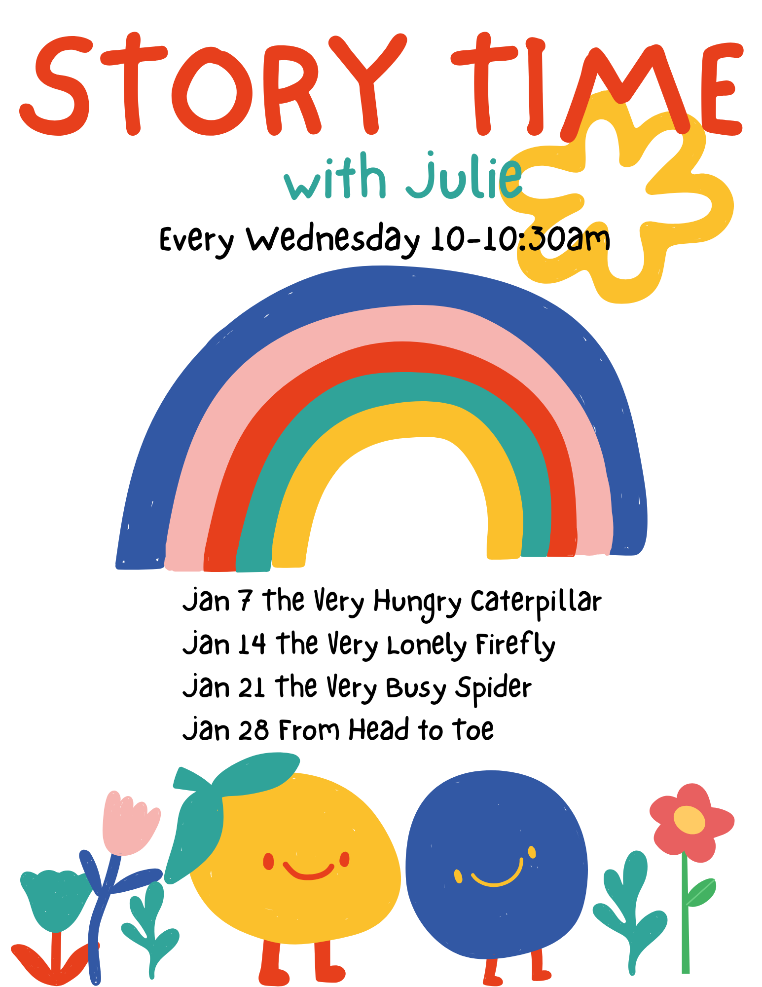 Weekly story time with Julie every Wednesday 10-10:30 am